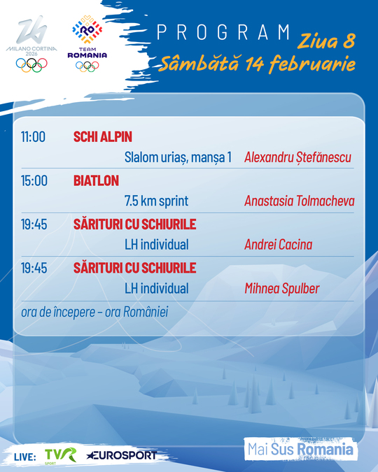 JO de iarnă: Programul de sâmbătă al sportivilor români
