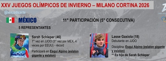„El (Lasse) are aceeaşi vârstă pe care o aveam eu la prima mea participare la Jocurile Olimpice (la Nagano, în 1998)”, a declarat Schleper, care a fost unul dintre purtătorii drapelului Mexicului la ceremonia de deschidere de la Milano-Cortina. „Sunt foarte mândră de el. Încă mai este un pic obraznic, dar această experienţă îl va ajuta să crească şi să înţeleagă cât de important este acest eveniment.”