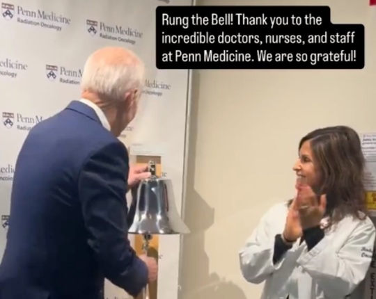 President Biden rang the bell yesterday at Penn Medicine Radiation Oncology in Philadelphia, PA, as he completed radiation therapy for cancer at the same hospital.
