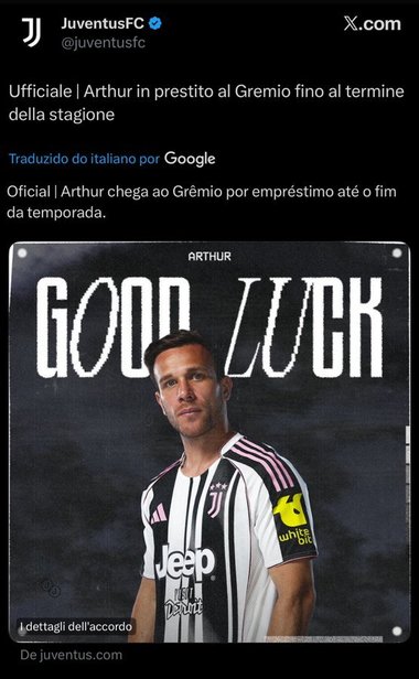 Juventus Torino a anunţat, marţi, împrumutul lui Arthur la clubul său formator, Grêmio, unde internaţionalul brazilian a jucat înainte de a se alătura FC Barcelona în septembrie 2020.