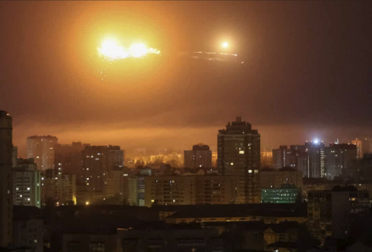 Jurnalişti ai AFP aflaţi în capitală au auzit zgomote de drone în zbor şi o serie de explozii, probabil tiruri ale apărării antiaeriene ucrainene.