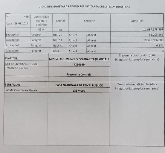 Marcel Boloş: Un nou transfer important de fonduri realizat de Ministerul Finanţelor – am procesat deschiderea de credite bugetare pentru ca 10,6 miliarde de lei să plece astăzi către Casa Naţională de Pensii, pentru plata tuturor pensiilor majorate