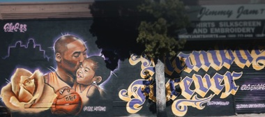 Bryant şi-a petrecut întreaga carieră de 20 de ani la Lakers, câştigând cinci campionate şi devenind cel mai bun marcator din istoria francizei. După ce Kobe şi Gigi Bryant au murit într-un accident de elicopter în ianuarie 2020, sute de picturi murale şi proiecte de artă publică în memoria lor au apărut în sudul Californiei.