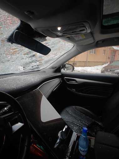 Imagini cu maşini distruse de bucăţi de gheaţă desprinse de pe acoperişuri au fost publicate, marţi, de jurnaliştii de la ziarulunirea.ro. În fotografii se vede cum parbrize şi capote au fost sparte, respectiv deformate de bucăţile de gheaţă căzute.