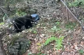 Pui de urs blocat cu capul într-un rezervor metalic, salvat / Alarma a fost dată de o persoană care se afla în drumeţie – VIDEO