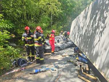 Acolo au fost mobilizate de urgenţă o autospecială de descarcerare, o autospecială de intervenţie la calamităţi şi dezastre şi o ambulanţă SMURD din cadrul ISU Gorj, o autospecială de intervenţie la calamităţi şi dezastre din cadrul ISU Mehedinţi, precum şi o ambulanţă SAJ.