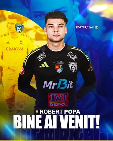 Portarul român Robert Popa, ultima oară la FCU Craiova, a semnat miercuri un contract cu echipa Unirea Slobozia şi va juca pentru formaţia din Superligă.
