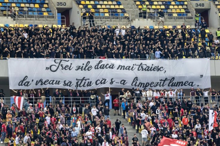 Derby-ul ar fi trebuit să se joace duminică, dar a fost amânat din cauza alegerilor prezidențiale. La o zi după ce George Simion (AUR) și Nicușor Dan (independent), au ajuns în turul doi, galeria dinamovistă a reacționat.