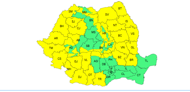 De asemenea, este cod galben în intervalul 17 martie, ora 23 – 18 martie, ora 12.