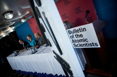 The Bulletin of the Atomic Scientists a fost înfiinţat în 1945 de către Albert Einstein şi oameni de ştiinţă care au lucrat în Proeictul “Manhattan”, care a produs prima bombă atomică.