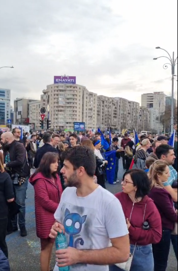 ”În acest moment, în Piaţa Victoriei, se desfăşoară o adunare publică de protest care întruneşte condiţiile de organizare şi participare impuse de cadrul legal în vigoare, organizată în scopul susţinerii apartenenţei României la Uniunea Europeană. Precizăm că în zona apropiată au fost identificate persoane care au participat la protestele precedente, susţinători ai unui fost candidat la alegerile prezidenţiale. Din discuţiile purtate cu organizatorul manifestaţiei publice de astăzi, acesta nu şi-a dat acceptul cu privire la prezenţa unor astfel de persoane în zona de desfăşurare”, a transmis Jandarmeria Bucureşti.