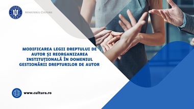 Ministerul Culturii lansează în consultare publică proiectul de Ordonanţă a Guvernului pentru modificarea şi completarea Legii nr. 8/1996 privind dreptul de autor şi drepturile conexe, precum şi pentru reorganizarea unor autorităţi publice din domeniul culturii.