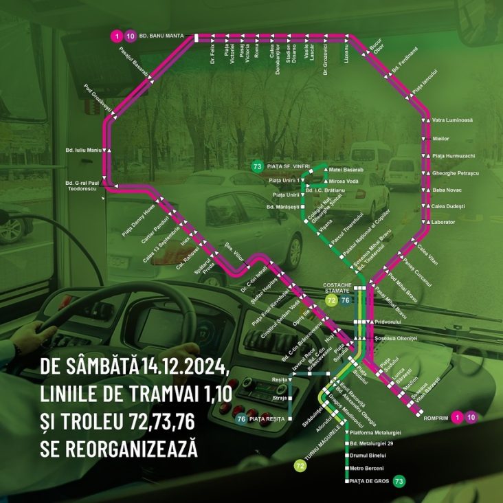 Toate aceste modificări vor intra în vigoare începând de sâmbătă, 14 decembrie 2024. Astfel, programul de transport al liniilor 1, 10, 72, 73, 76, 610 şi 673 se va actualiza, după cum urmează: