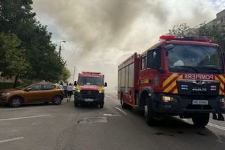Incendiu puternic la mansarda unui bloc din Constanţa / Un bărbat a fost transportat în stare gravă la spital – FOTO