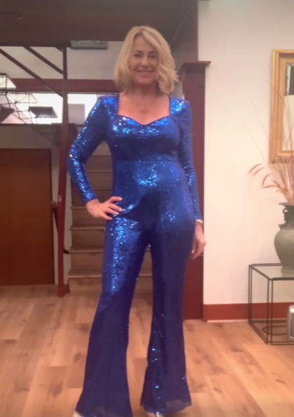 Legendara Nadia Comăneci a fost prezentă din nou la decernarea Globurilor de Aur, ea având o apariţie strălucitoare într-o salopetă de culoare albastră.