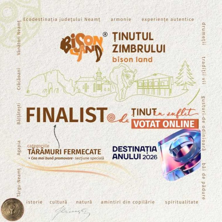 Ținutul Zimbrului, destinația ecoturistică a județului Neamț, s-a calificat în finala competiției naționale ‘Destinația Anului 2026’ la categoriile ‘Tărâmuri fermecate’ și ‘Cea mai bună promovare’, a declarat, marți, pentru AGERPRES, președinta Asociației ‘Ținutul Zimbrului’, Geanina Fedeleș.