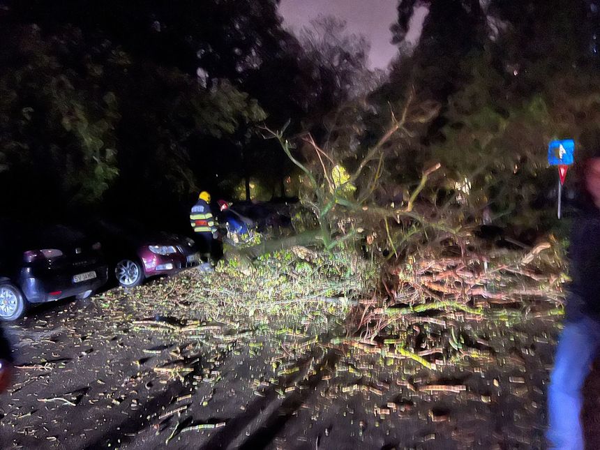 Un copac a căzut peste două maşini, în Suceava / Nu sunt înregistrate victime