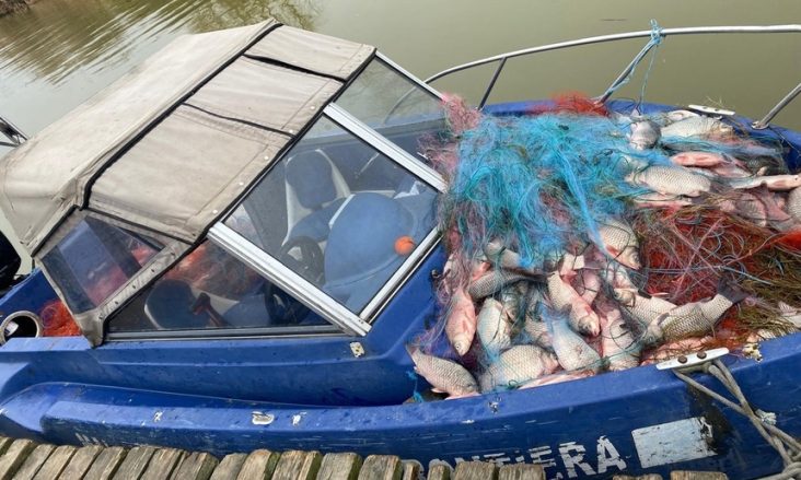 Poliţiştii de frontieră din cadrul Gărzii de Coastă au scos din lacul Razim 900 de metri de plase mono-filament, cu o captură de 225 de kilograme de peşte.