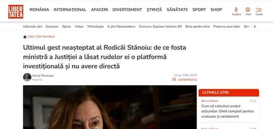 Într-un articol promovat pe reţelele de socializare, care aparent este publicat de ziarul Libertatea, folosind logo-ul publicaţiei, dar în realitate nu are nicio legătură cu site-ul ziarului, o aşa-numită „platformă de investiţii” acreditează ideea că octogenara Rodia Stănoiu a făcut 6 milioane de lei din averea sa investind pe respectiva platformă.