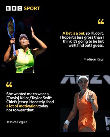 Cele două jucătoare au fost apoi întrebate despre acest subiect în cadrul conferinţei de presă. Keys, în vârstă de 30 de ani, a răspuns: „Un pariu rămâne un pariu, aşa că îl voi onora. Sper că va fi mai puţin dezgustător decât îmi imaginez, dar vom vedea…”.
