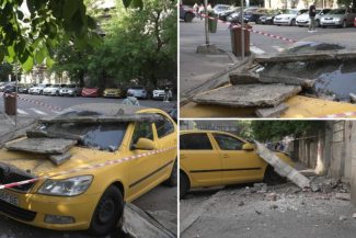 Momente de panică în Capitală. Un balcon s-a prăbușit peste o mașină