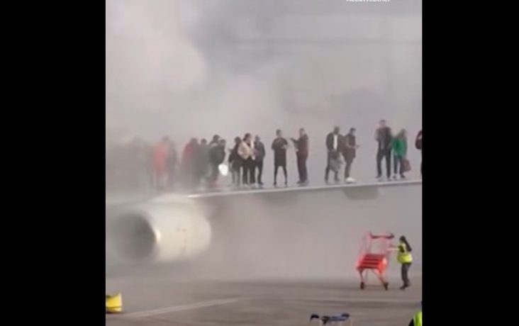 Imaginile de la faţa locului arată zeci de pasageri părăsind aeronava şi stând pe aripă, în timp ce fumul umplea aerul.