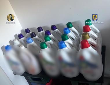 Poliţiştii au făcut joi 32 de percheziţii, în şapte judeţe şi în Bucureşti, la o grupare specializată în contrabandă, care este acuzată că ar fi cumpărat detergent din Ucraina, iar acesta era vândut ulterior în mai multe centre comerciale, ambalat în recipiente de plastic sau cutii inscripţionate cu numele unor mărci cunoscute.