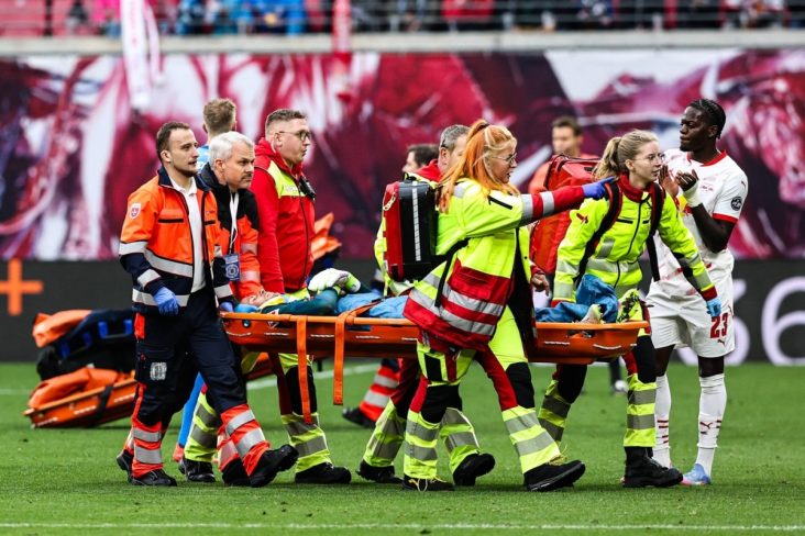 Jucătorul a fost scos de pe teren cu targa, după un duel cu fundaşul sloven David Zec.