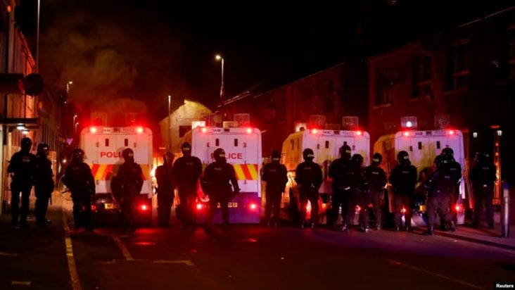 Un protest paşnic desfăşurat luni seara în legătură cu presupusa agresiune a fost urmat de atacuri asupra poliţiei şi asupra proprietăţilor în care locuiesc minorităţi etnice. PSNI a descris scenele drept “violenţe rasiste”.