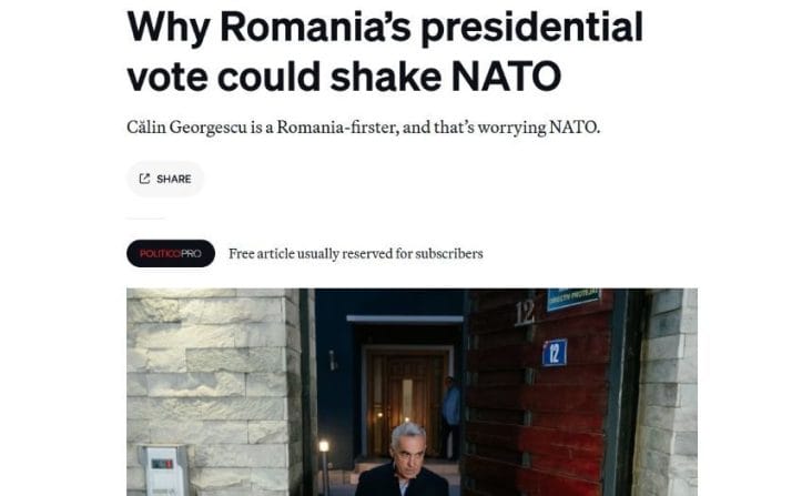 Dar în sistemul politic românesc de tip francez, preşedintele este şeful statului, comandantul suprem al forţelor armate şi responsabil cu politica externă. Prin urmare, prezenţa unui sceptic NATO la Palatul Cotroceni ar putea crea mari probleme pentru alianţă. Georgescu ar putea copia, de exemplu, cartea pe care o joacă premierul ungar Viktor Orbán şi ar putea acţiona ca un „spoiler” pro-Kremlin în cadrul NATO. Prin urmare, o schimbare politică dramatică la Bucureşti ar putea submina rolul României ca unul dintre principalii actori de securitate regională ai alianţei militare, arată POLITICO.