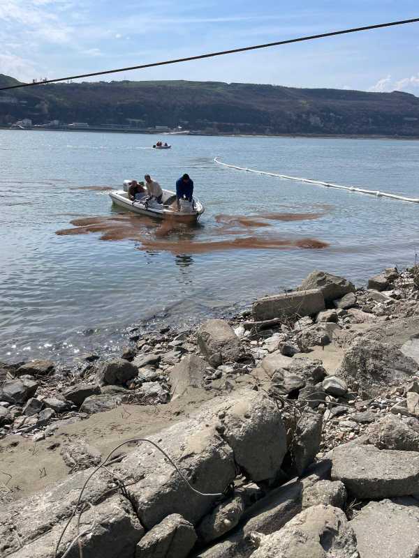 ‘Din primele informații și observații vizuale efectuate la fața locului, se constată prezența unor irizații la suprafața apei, fără a se evidenția, în acest moment, o peliculă continuă de produs poluant. Fenomenul se manifestă în proximitatea barjei implicate, către care se deplasează’, se arată în comunicat.