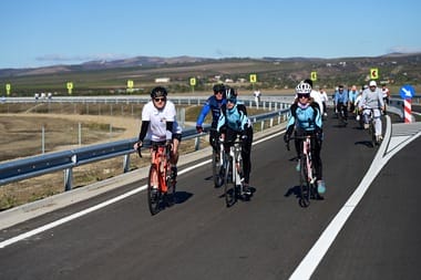 Înainte de a deschide drumul circulaţiei rutiere, autorităţile din Prahova au invitat iubitorii de ciclism să pedaleze pe noul drum astfel că, duminică, peste 300 de persoane au răspuns invitaţiei.
