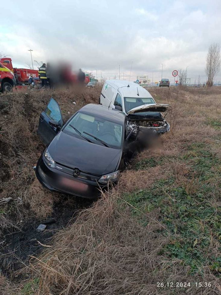 Un accident rutier în care sunt implicate trei autoturisme şi zece persoane s-a produs, joi după amiază, pe Drumul Naţional 1, în apropiere de Ploieşti. Două dintre autovehicule au fost proiectate în şanţul de pe marginea drumului.