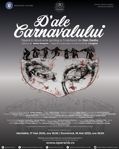 Premiera absolută a operei „D’ale carnavalului” de Dan Dediu va avea loc în 17 şi 18 mai la Opera Naţională Bucureşti. Libretul şi conceptul regizoral aparţin regretatului maestru Ştefan Neagrău, iar adaptarea scenică este semnată de Eugen Dediu. Scenografia poartă semnătura Vioricăi Petrovici, iar coregrafia este realizată de Valentin Stoica. Conducerea muzicală este asigurată de către maestrul Tiberiu Soare, dirijorii corului sunt Adrian Ionescu şi Ethan Schmeisser, iar corul de copii este pregătit de Smaranda Morgovan.