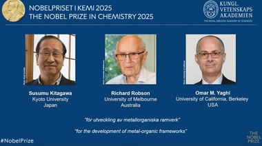 Academia Regală Suedeză de Ştiinţe a decis să acorde Premiul Nobel pentru Chimie 2025 lui Susumu Kitagawa, Richard Robson şi Omar M. Yaghi „pentru dezvoltarea structurilor metal-organice”. Prin dezvoltarea structurilor metal-organice, laureaţii au oferit chimiştilor noi oportunităţi pentru rezolvarea unor provocări cu care ne confruntăm, potrivit Comitetului Nobel.