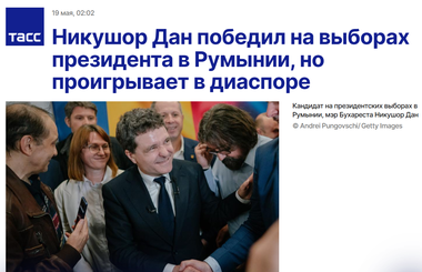 Totuşi, agenţia notează că în rândul românilor din Rusia şi China, Nicuşor Dan a câştigat. În Rusia, unde au fost deschise două secţii de votare – la Moscova şi Sankt Petersburg – Dan a obţinut 58,65 la sută din voturi, în timp ce Simion a obţinut 41,35 la sută. În Federaţia Rusă sunt 115 români. În China, Dan a obţinut 84,23 la sută din voturi, în timp ce Simion a obţinut 15,77 la sută. Dan a câştigat alegerile şi în rândul românilor aflaţi în Kazahstan, Iran, India, Thailanda, Japonia, Indonezia şi Uzbekistan, menţionează TASS.