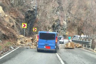 Circulaţie îngreunată pe DN 66, din cauza căderii de pietre de pe versant / DRDP Craiova: Pentru îndepărtarea blocurilor de piatră se va interveni cu încărcătoare frontale de mare capacitate – FOTO