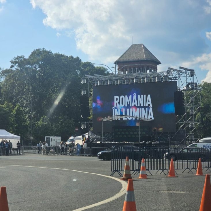 O sesizare a fost făcută la 112 faţă de dimensiunile prea mari şi care ar încălca reglementările legale ale ecranului electronic amplasat în Piaţa Victoriei pentru mitingul electoral organizat, duminică seară, de susţinătorii candidatului independent Nicuşor Dan.