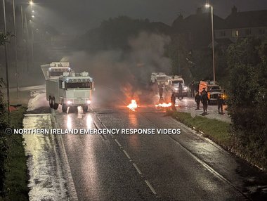 Tineri au incendiat, de asemenea, un sens giratoriu din oraşul Newtownabbey, un punct sensibil pentru violenţa sectară care izbucneşte sporadic în Irlanda de Nord, la 27 de ani după ce un acord de pace a pus capăt în mare parte la trei decenii de vărsare de sânge.
