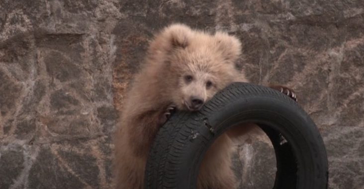 Având o înălţime de un metru şi cântărind peste 35 kg, fiecare mişcare a ursului brun captivează fanii care îi admiră blana pufoasă.