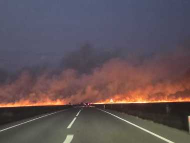 Pompierii intervin, luni seară, pentru a stinge un puternic incendiu de vegetaţie uscată şi mirişte care a izbucnit în judeţul Dolj. Traficul pe DN 56, în zona Maglavit – Moţăţei Gară, este oprit.