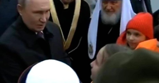 Vladimir Putin, membri ai clerului şi oficialii care-l înconjurau, au ascultat-o pe fată până la capăt, cu mare atenţie, potrivit acestei înregistrări video, postată miercuri.