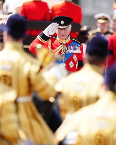 Sâmbătă, la Londra, s-a ţinut un minut de reculegere după ce regele a inspectat parada, care marchează ziua sa oficială de naştere.
