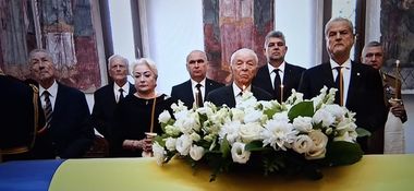 În sala Unirii, de-a dreapta catafalcului au fost aşezaţi foştii prim-miniştri: Nicolae Văcăroiu, Teodor Stolojan, Adrian Năstase, Viorica Dăncilă şi Marcel Ciolacu. În stânga, au luat loc câţiva membri ai Guvernului, în frunte cu premierul Ilie Bolojan. Preşedintele Nicuşor Dan, deşi se afla la Palatul Cotroceni, nu a participat la funeralii.