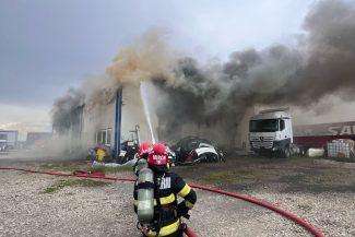 UPDATE – Incendiu la un atelier auto, pe şoseaua de centură a municipiului Alba Iulia/ Pompierii au intervenit cu mai multe autospeciale/ Un bărbat cu arsuri la mâini primeşte îngrijiri medicale