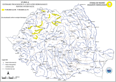 Potrivit hidrologilor, pe fondul precipitaţiilor prognozate şi al propagării acestora, joi, între orele 6:00 – 16:00, se vor înregistra scurgeri importante pe versanţi, torenţi şi pâraie, precum şi viituri rapide pe râurile mici, cu posibile efecte de inundaţii locale şi creşteri ale debitelor şi nivelurilor, putând fi depăşite cotele de atenţie.