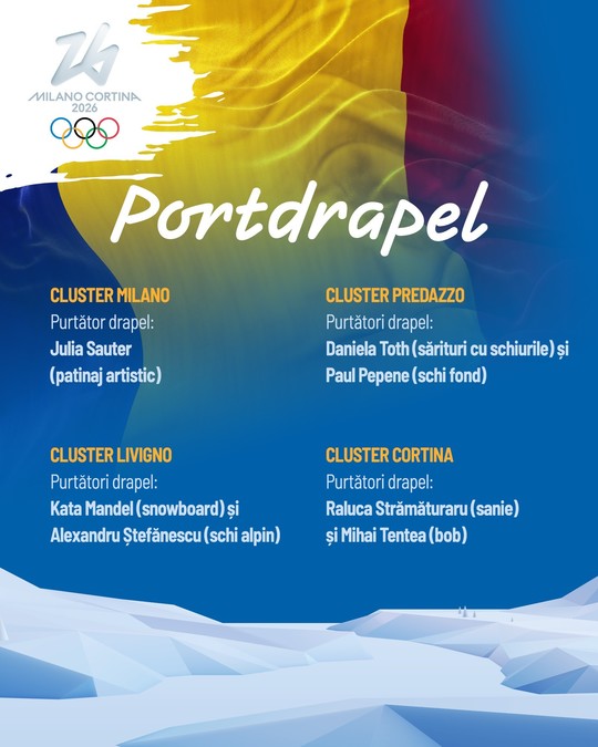 Componenţa delegaţiei României care va participa la Jocurile Olimpice Milano Cortina 2026 a fost aprobată, joi, de Comitetul Executiv al Comitetului Olimpic şi Sportiv Român.