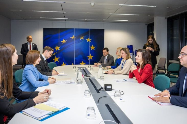 ”Bucuroasã să o primesc pe preşedinta Republicii Moldova, Maia Sandu! Comisia Europeană sprijină calea europeană a Moldovei, cimentatã prin referendum popular. Împreună servim cetăţenii pentru a le oferi oportunităţi de muncă şi antreprenoriat, protecţia socială şi democratică, soluţiile de sprijin de care cei vulnerabili au nevoie. Republica Moldova este acâşã în Uniunea Europeanã. Împreunã dãm forţã şi viitor, Europei”, a scris, miercuri seară, pe Facebook, românca Roxana Mînzatu, distribuind mai multe fotografii de la întâlnirea avută cu preşedintele Republicii Moldova.