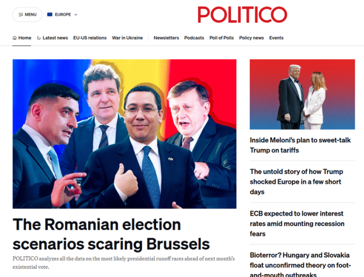 Toţi ochii sunt aţintiţi asupra României. Ţara se va prezenta la urne pe 4 mai în primul tur al unor alegeri prezidenţiale controversate, după ce îngrijorările legate de interferenţa Rusiei au dus la anularea votului iniţial în noiembrie anul trecut. Acum că ultranaţionalistul Călin Georgescu, sprijinit de Moscova, a fost descalificat din alegerile repetate, George Simion, liderul Alianţei pentru Unirea Românilor (AUR), de extremă dreapta, a trecut în fruntea sondajelor, înaintea unui vot care ameninţă să zguduie UE şi NATO, dacă Bucureştiul se abate de la calea sa proeuropeană, scrie, miercuri, POLITICO, într-o analiză plasată în deschiderea site-ului.