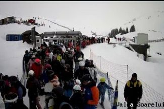 Zeci de turişti, la rând la mijloacele de transport pe cablu din Bucegi. Administratorii pârtiilor atrag atenţia că nu sunt condiţii ideale pentru începători – FOTO